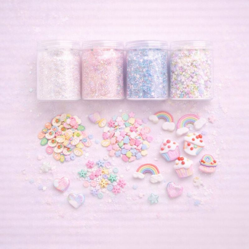 Beads, shaker mixes, glitter, and tools